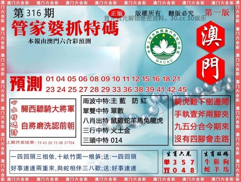 315期:九肖(猪鼠牛狗马猴羊蛇)开虎04